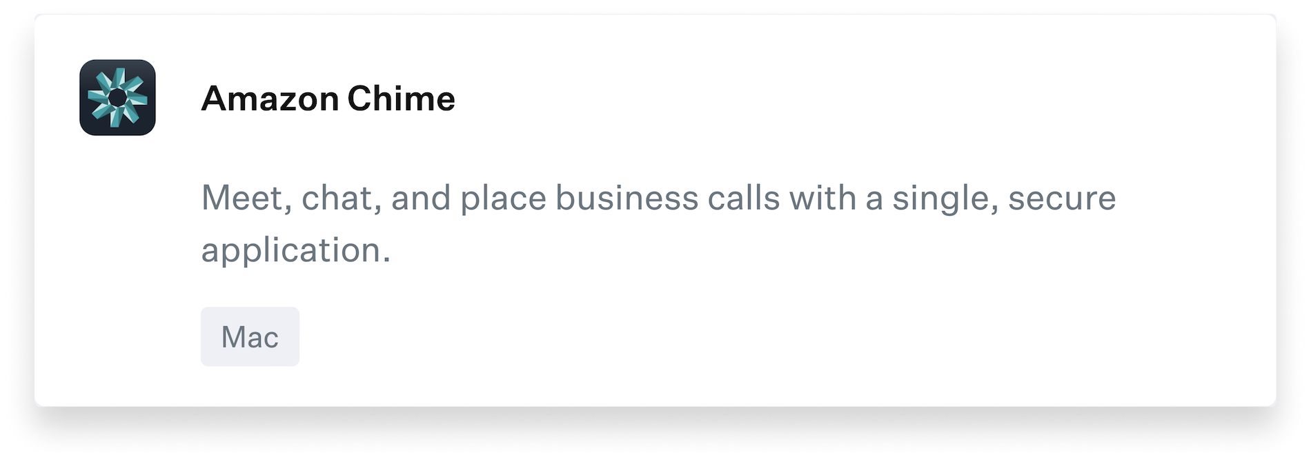 A new Auto App, Amazon Chime, has been added to the catalog and is now available for all customers.