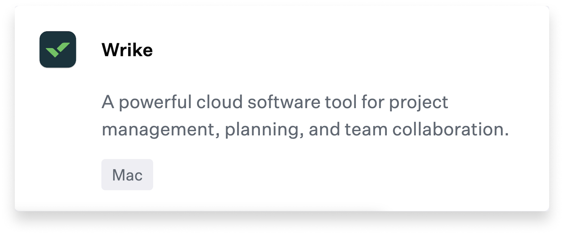 A new Auto App, Wrike, has been added to the catalog and is now available for all customers.