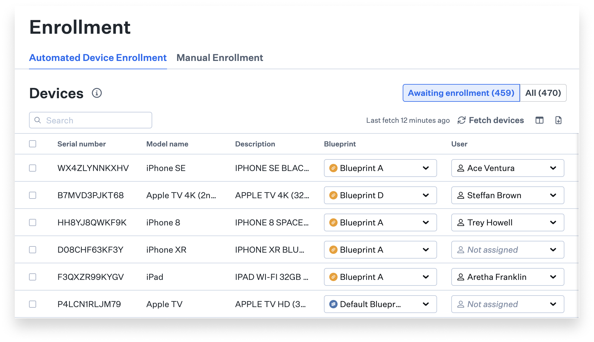 - The Add Devices page has been renamed Enrollment. This new page consolidates settings for Manual Enrollment and the list of Automated Device Enrollment devices; the latter has an updated look and feel.